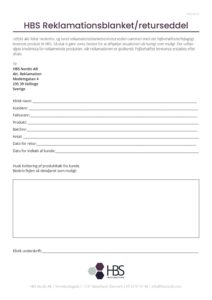 HBS Nordic reklamationsblanket/returseddel